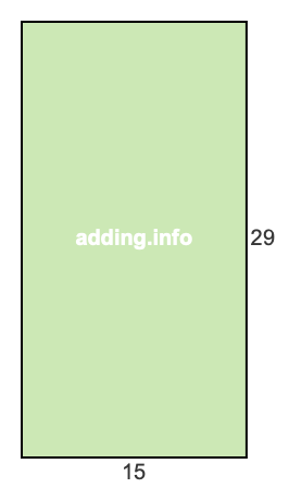 Ratio is often used when defining rectangles in width:height format. Width and height can be feet, inches, centimeters, or any other kind of length. With a ratio of 15 to 29, the width is 15 and the height is 29. Below is a picture of what a rectangle with a ratio of 15:29 looks like.