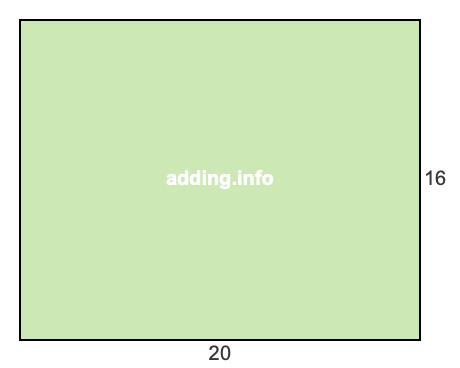 Ratio is often used when defining rectangles in width:height format. Width and height can be feet, inches, centimeters, or any other kind of length. With a ratio of 20 to 16, the width is 20 and the height is 16. Below is a picture of what a rectangle with a ratio of 20:16 looks like.