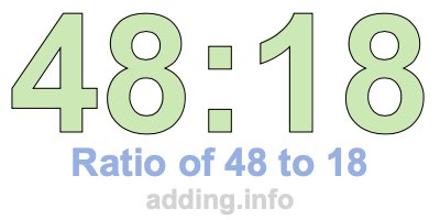 A ratio of 48 to 18 simply means that for every 48 of something, there are 18 of something else, with a total of 66.