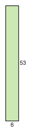 Ratio is often used when defining rectangles in width:height format. Width and height can be feet, inches, centimeters, or any other kind of length. With a ratio of 6 to 53, the width is 6 and the height is 53. Below is a picture of what a rectangle with a ratio of 6:53 looks like.