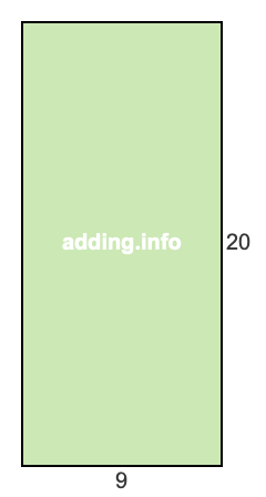 Ratio is often used when defining rectangles in width:height format. Width and height can be feet, inches, centimeters, or any other kind of length. With a ratio of 9 to 20, the width is 9 and the height is 20. Below is a picture of what a rectangle with a ratio of 9:20 looks like.